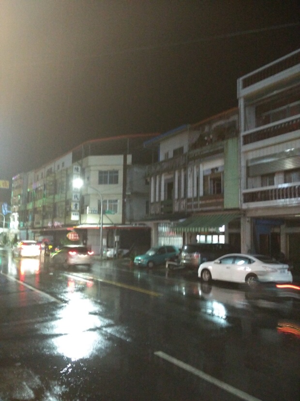 晚上还是下起了暴雨,最有意思的是,一段路前面是乌云密布,后面是烈日高照,简直是两重天嘛。最后我们到了台东市住,不过这哪里能算市哦,只能算个镇啦,而且最亮的永远是“政治广告”。