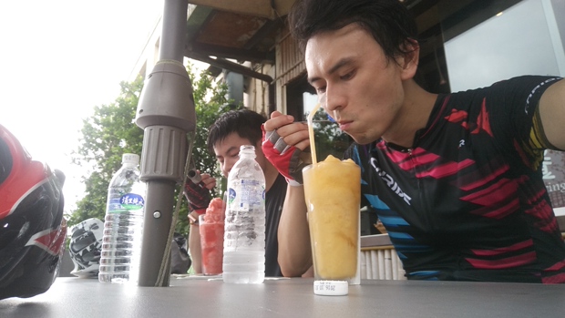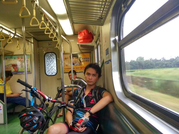 烈日依旧,不过好在不用再像第一天那样翻山了,下午毫无疑问地下起了大雨(后来几天都先暴晒再湿身)。路上我们遇到了一个骑行的台湾妹子,几个招呼来回后还更她成了熟人。经她了解,前面的路很危险,主要是产水泥的地方,路很窄,大车也比较多,建议我们坐火车先前行100公里再继续前行。因此我们就坐上火车啦(后来听人说我们这一坐是错过了好几个景点)