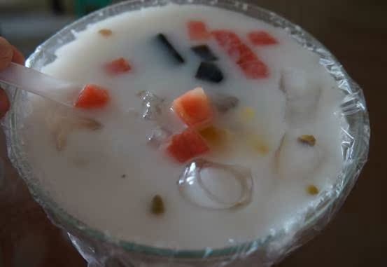 一起吃了简单的炒饭继续上路,饭后有体力,我们一路拉到市区。在光胎哥的带领下我们沿解放路走下去,在吉祥街找到家价格不错的宾馆(路上也打听了几家价格高得离谱),没有了金大侠砍价我们还有光胎哥90元/3人间,宾馆名字记不清了。晚上在宾馆对面的凉茶店第一次吃到了传说中的海南特色清补凉。