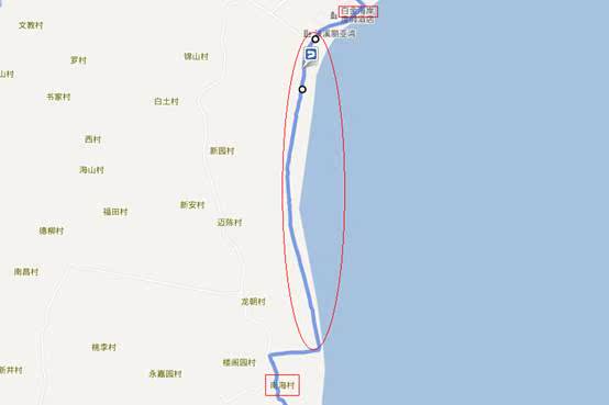 路线图白金海岸~南海村,泥水路段位图中椭圆形红框内