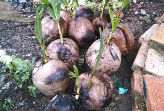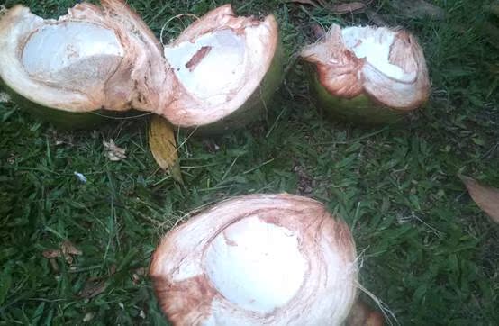 喝完了椰子汁,也不能放过椰子肉,摔开吃肉(白白的那层就是椰子肉)