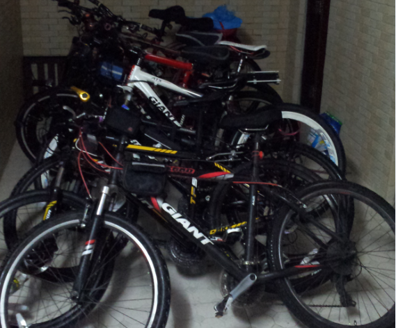 等睡醒了已经到上午10:30了,起床洗澡后,将轮子拆下来用莲蓬对着花鼓一阵冲洗,重新装好轮子后,将本来固定在背包上的帐篷2.4KG和放在包里的防潮垫1.7KG取出来挂在车把上,这样背上背的重量只有6KG了。
