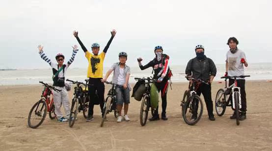 红色的车+红色的衣服+粉色的头盔+苗条的身行,林妹妹从背后看真像妹子。爆胎哥和林妹妹以前重来没练过,竟然除了腚疼发动机都能跟上全程没掉队,见小坡他俩就来劲都是冲上去的,让人不得不感叹年轻真好!前行一段路程后遇上了两个东莞的骑友与我们临时组成车队,不过第二天他们就与我们分道扬镳了。