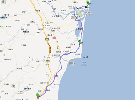 路线图(谷歌地图有条小路没有路线标注不出来,暂时改用百度)清澜镇~博鳌镇65.7KM