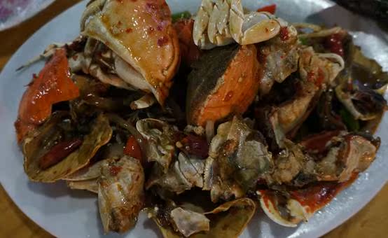 拍完照继续骑行很快就到第一天的终点清澜镇了,金大侠当仁不让的帮大家与旅馆老板砍价,最后定在一家离码头很近的旅馆,90元/二人间。晚饭就在旅馆对面的大排档解决的,也可以多走`两步去码头买渔民才打上来的海鲜,然后到店里去加工。
